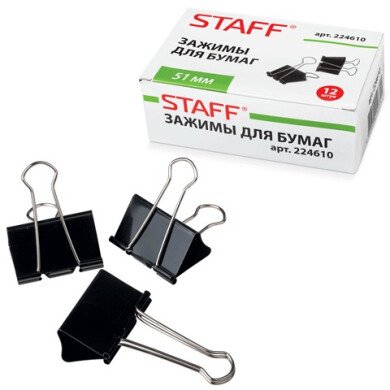 - Зажим для бумаг 51 мм STAFF черный, 1шт
