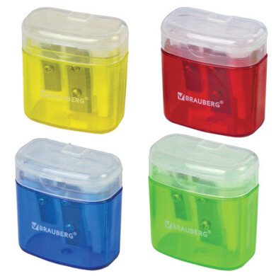Точилка BRAUBERG "Chief", 2 отверстия с контейнером, с крышкой