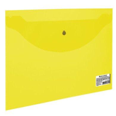 - Папка-конверт с кнопкой А5, прозрачная, желтая, 0,18 мм, BRAUBERG