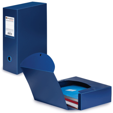 - Папка-короб архивный 10 см Brauberg пластиковый разборный, синий