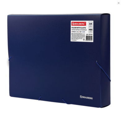 - Папка-короб архивный 5 см Brauberg на резинках синий
