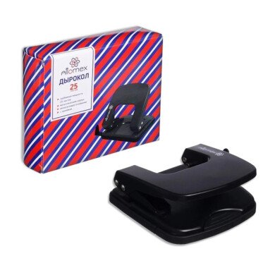 Дырокол до 25 листов, Attomex,металлический форматная линейка, чёрный