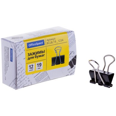 - Зажим для бумаг 19 мм OfficeSpace черный
