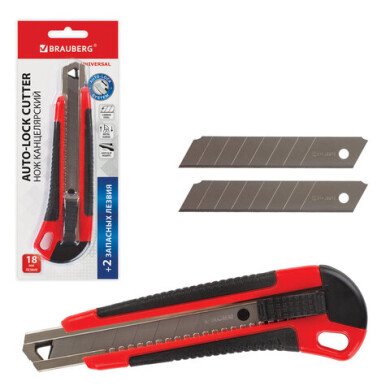 Нож канцелярский 18 мм BRAUBERG "Universal", 3 лезвия в комплекте