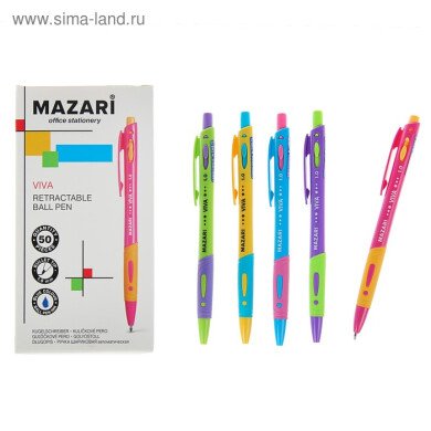 Ручка шариковая 1,0 мм автоматическая Mazari Viva, резиновый упор, синяя, корпус МИКС