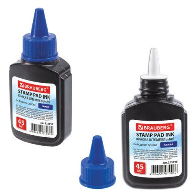 Краска штемпельная 45 мл, BRAUBERG, синяя, на водной основе