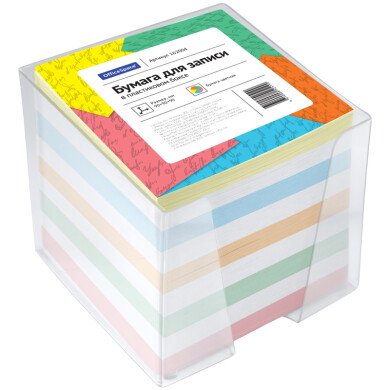 - Блок для записи 9*9*9 см OfficeSpace цветной в прозрачном пластиковом боксе