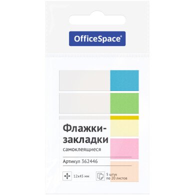 Закладки пластик 12*45 мм 20л. 5 цв с липким слоем неон OfficeSpace, европодвес