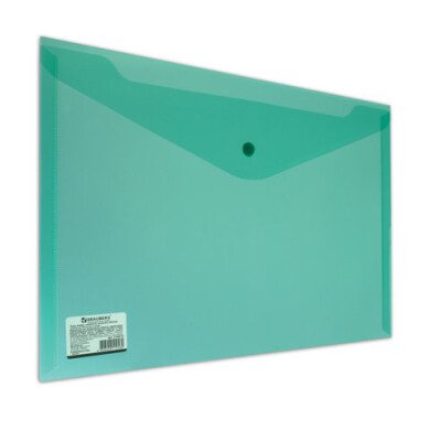 Папка-конверт на кнопке 180мкм А4 BRAUBERG зеленая прозрачная сверхпрочная