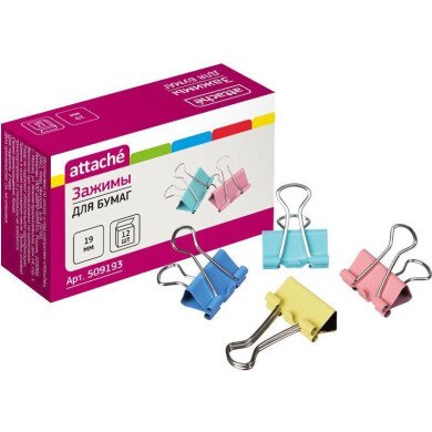 Зажим для бумаг 19 мм ATTACHE цветные, в картонной коробке