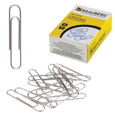 - Скрепки 50 мм Brauberg никелированные, в картонной уп.50 шт