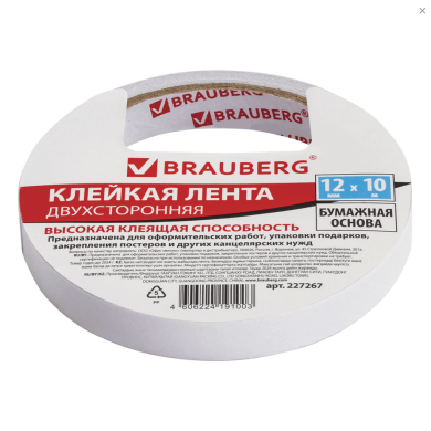 - Скотч 12 мм*10 м Braurderg двусторонний на бумажной основе