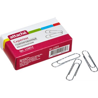 Длина, мм - 50 Кол-во штук в единице продажи - 50 Цвет - серебристый Покрытие материал - отсутствует Гофрированные - Да Форма скрепки - овальная