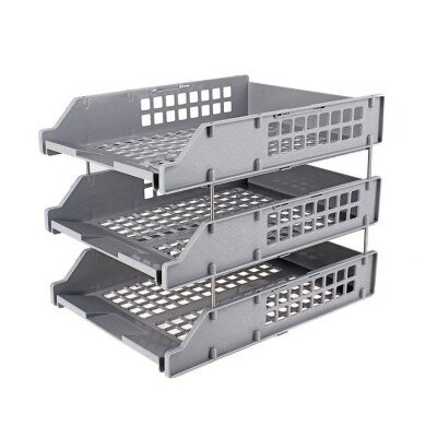 - Лоток горизонтальный для бумаг 3 секции, разборн серый, BRAUBERG GRAND OFFICE