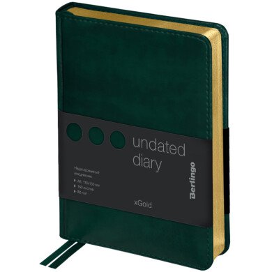 - Ежедневник недатированный А6, 100*150 мм 160л., кожзам, Berlingo "xGold", зол. срез, зеленый