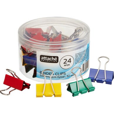 - Зажим для бумаг 32 мм ATTACHE цветные, 24шт.