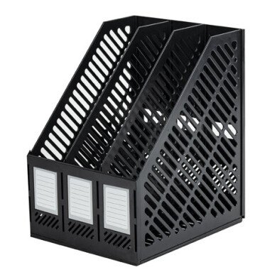 Лоток вертикальный BRAUBERG "Office-Expert" сборный, 3 отделения, черный