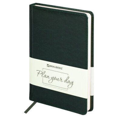Ежедневник недатированный А5 13,8*21,3 см BRAUBERG "Imperial" под кожу, 160 л., зеленый,