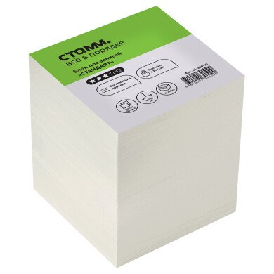 Блок для записей 9*9*9 см СТАММ "Стандарт", на склейке, белый
