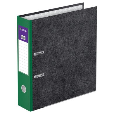 - Папка-регистратор 80 мм Berlingo "Hyper", мрамор, с карм. на корешке, нижний метал. кант, зеленая