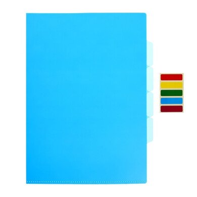 Уголок пластиковый А4, 150 мкм, Calligrata, 3 отдел, прозрач, синяя
