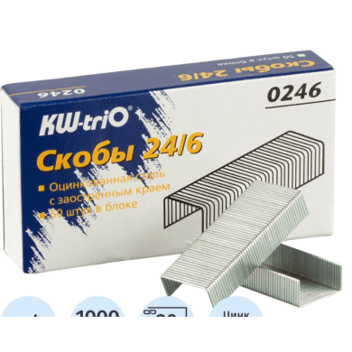 - Скобы для степлера № 24/6 KW-Trio оцинкованные, 1000шт