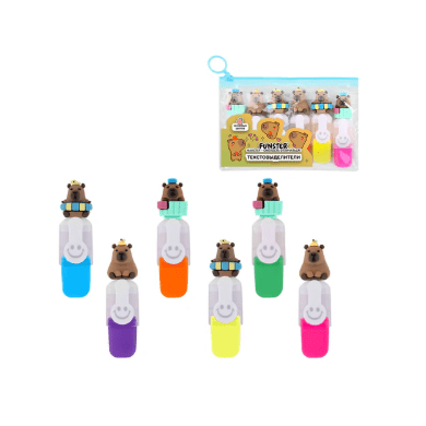 Набор текстовыделителей с топперами 6 ЦВЕТОВ НЕОН, "КАПИБАРЫ", линия 1-4 мм, FUNSTER (ФАНСТЕР)
