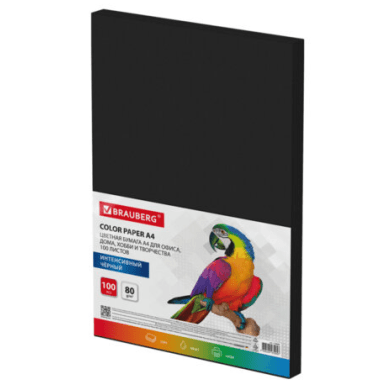 Бумага цветная BRAUBERG, А4, 80 г/м2, 100 л., ЧЕРНАЯ, интенсив, для офиса, хобби и творчества