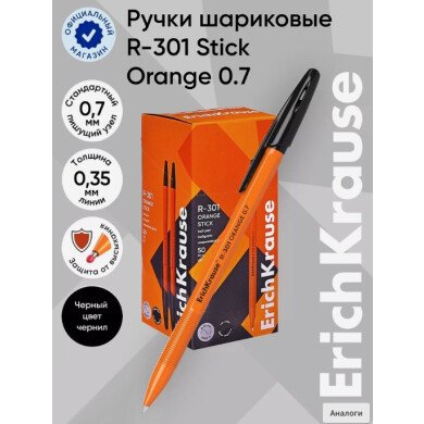 Ручка шариковая ErichKrause R=301 Orange Stick, узел 0.7 мм, чёрная