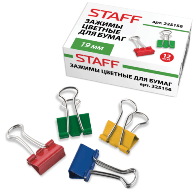 - Зажим для бумаг 19 мм STAFF цветные