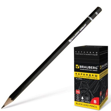 - Карандаш чернографитовый B Brauberg Touch line, черный, без резинки