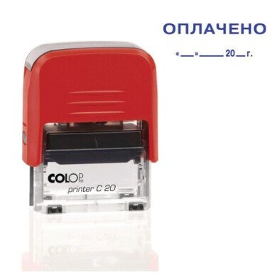 Материал - пластик Размер оттиска - 14x38 мм Значение штампа - Оплачено и дата Количество терминов - 1