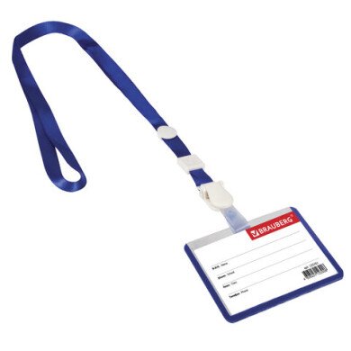 Бейдж 55*90 мм, на ленте со съемным клипом,горизонтальный ( СИНИЙ, BRAUBERG,