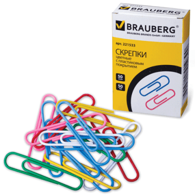 - Скрепки 50 мм Brauberg цветные, в картонной уп.50 шт