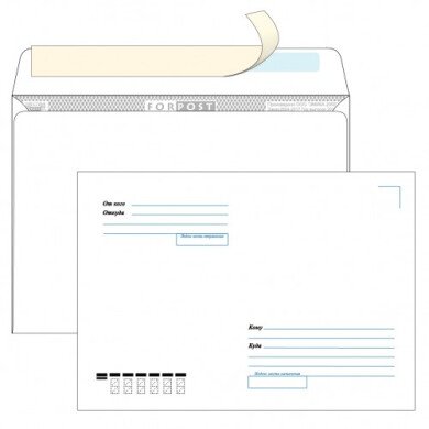 - Конверт С5 162*229 мм, FORPOST, белый, стрип, заливка, куда-кому, 80 гр