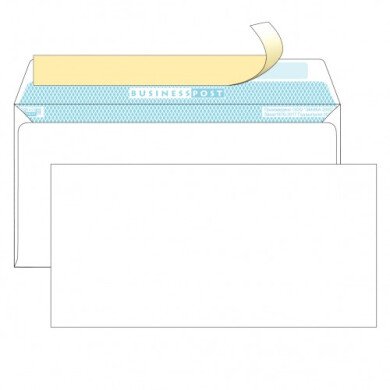 - Конверт Е65, 110*220 мм, BUSINESSPOST, белый, стрип,голубая заливка, 90 гр