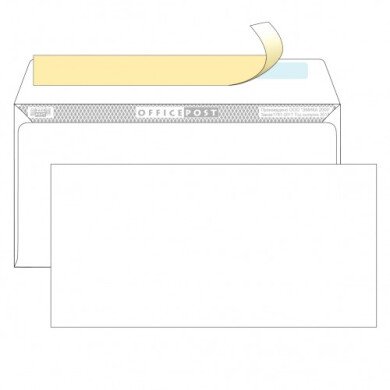 - Конверт Е65, 110*220 мм, OFFICEPOST, белый, стрип, серая заливка, 80 гр